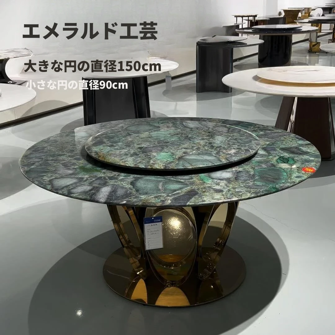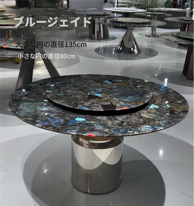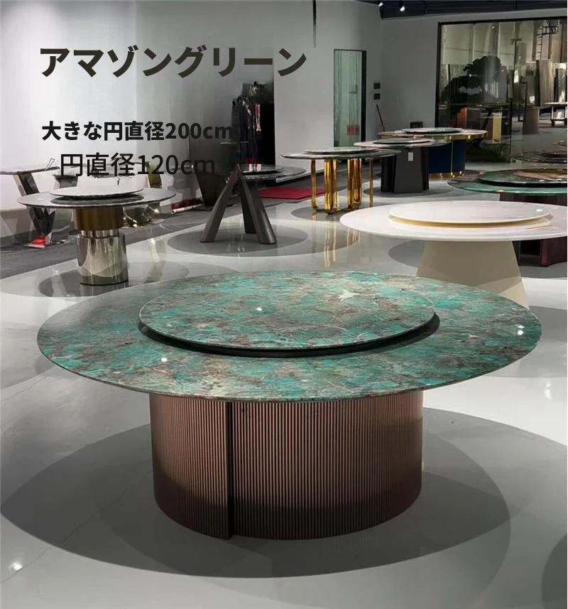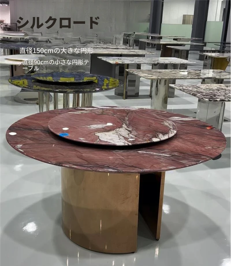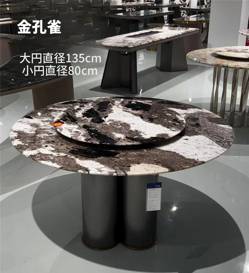 パンドラ大理石ラウンドダイニングテーブルセット - 回転プレート付きのイタリアンスタイル、豪華でありながら軽やかなデザインの家庭用丸テーブル。おしゃれな食卓で特別なひとときを演出!