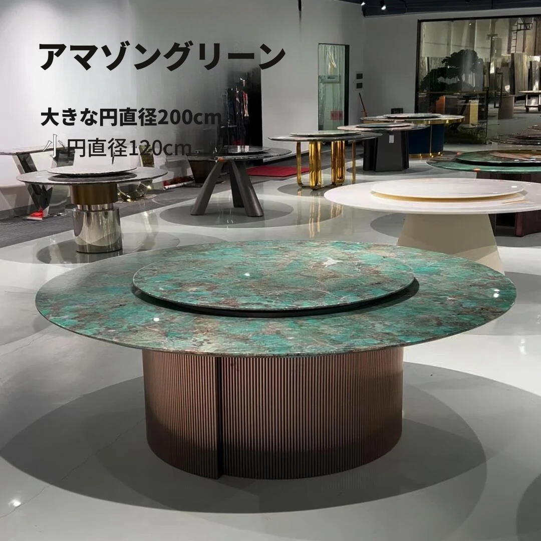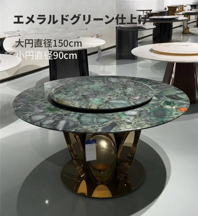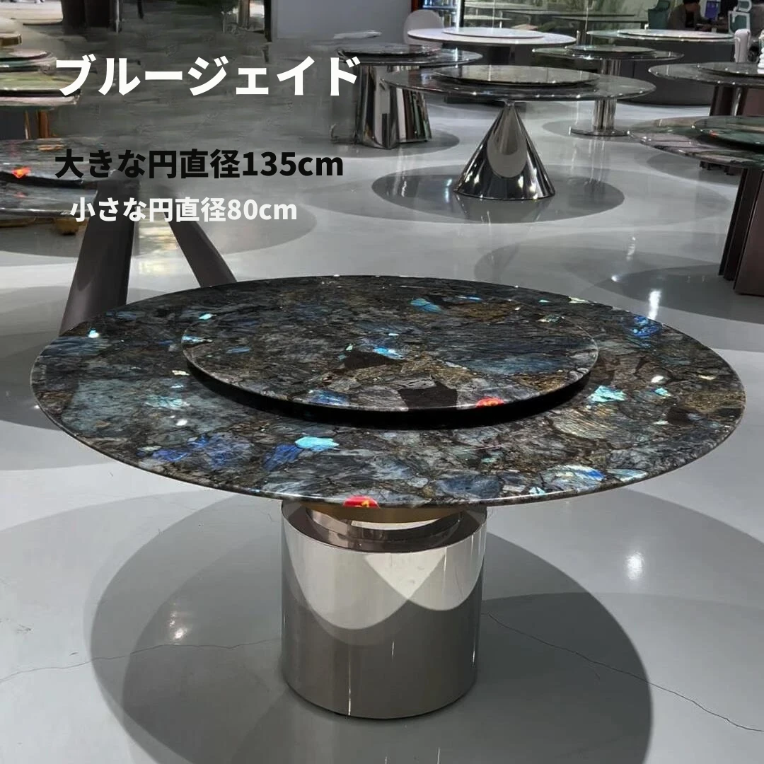 パンドラ大理石ラウンドダイニングテーブルセット - 回転プレート付きのイタリアンスタイル、豪華でありながら軽やかなデザインの家庭用丸テーブル。おしゃれな食卓で特別なひとときを演出!
