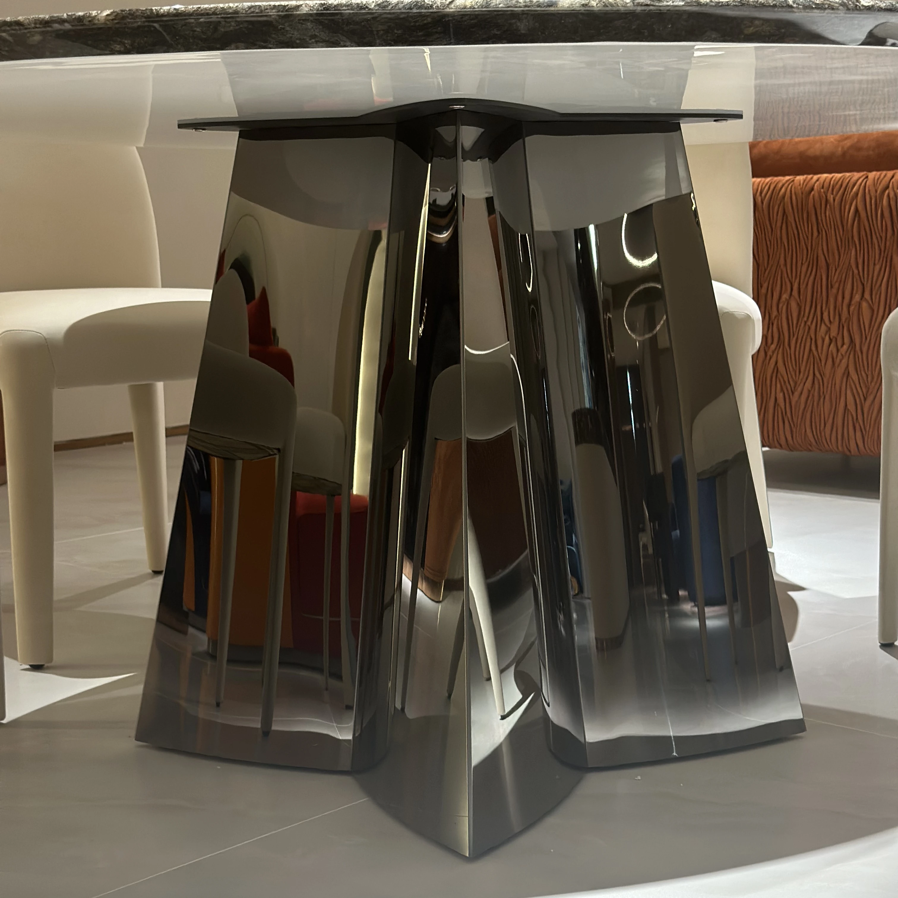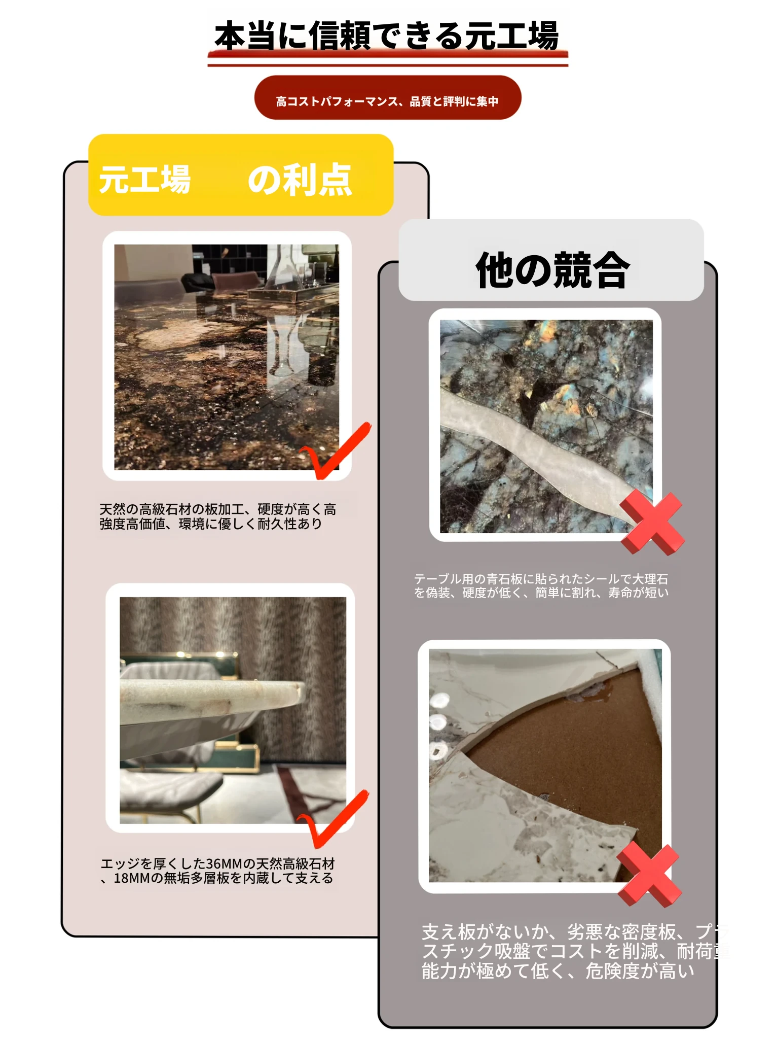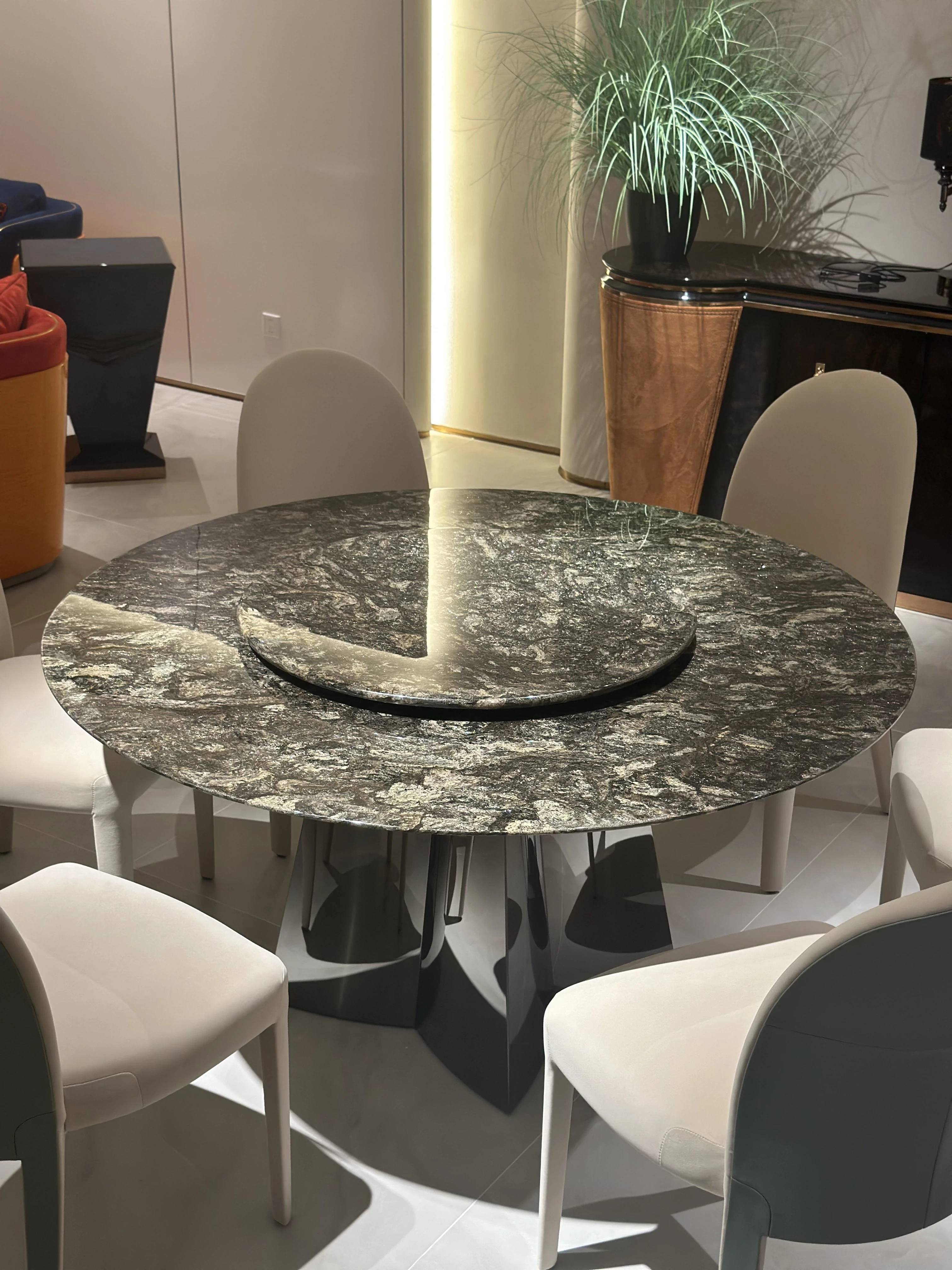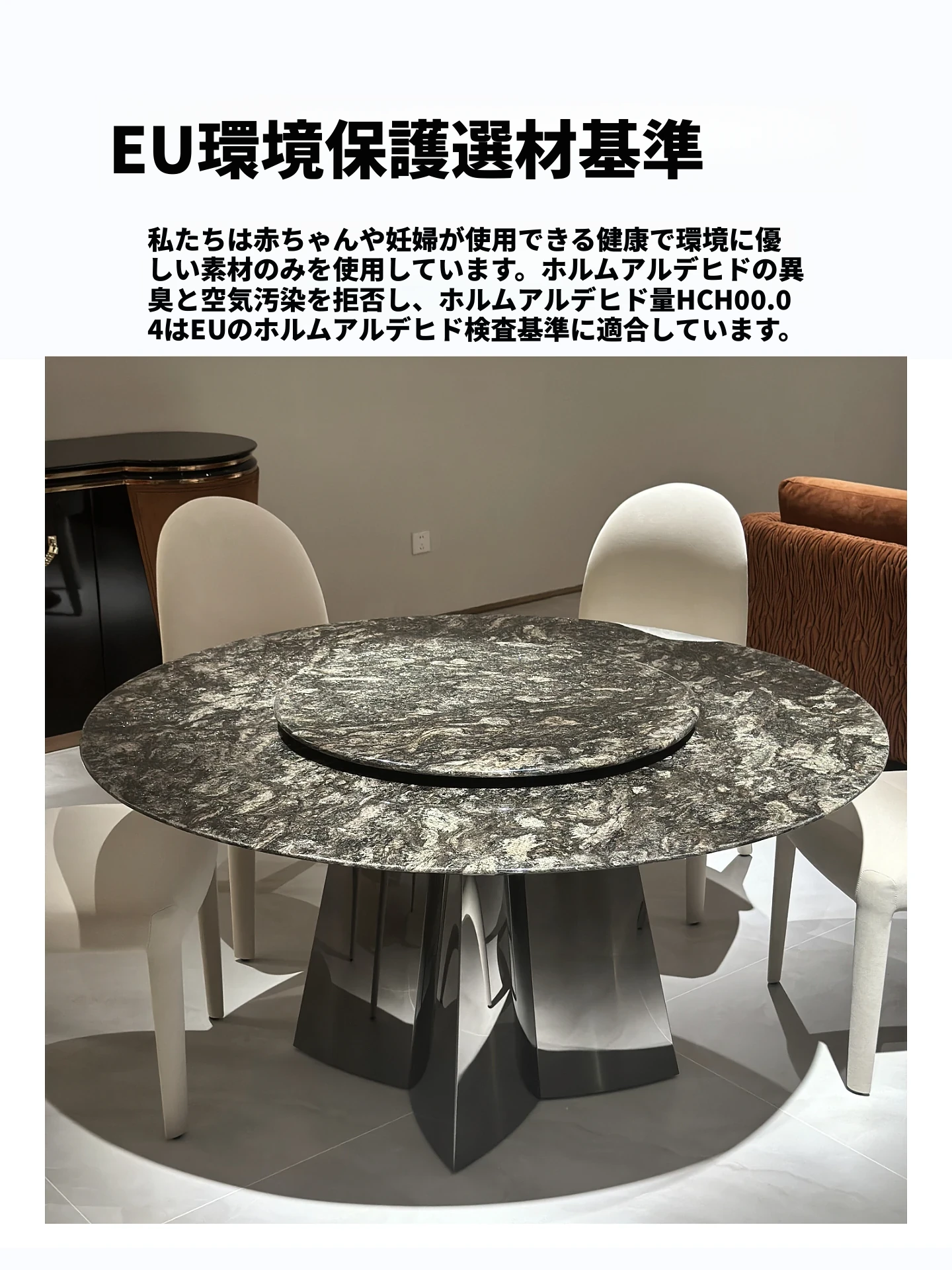 プラチナブロック大理石ダイニングテーブル - 高級天然石使用のイタリアン豪邸スタイル、シンプルで洗練されたデザインが魅力のラグジュアリーテーブル。