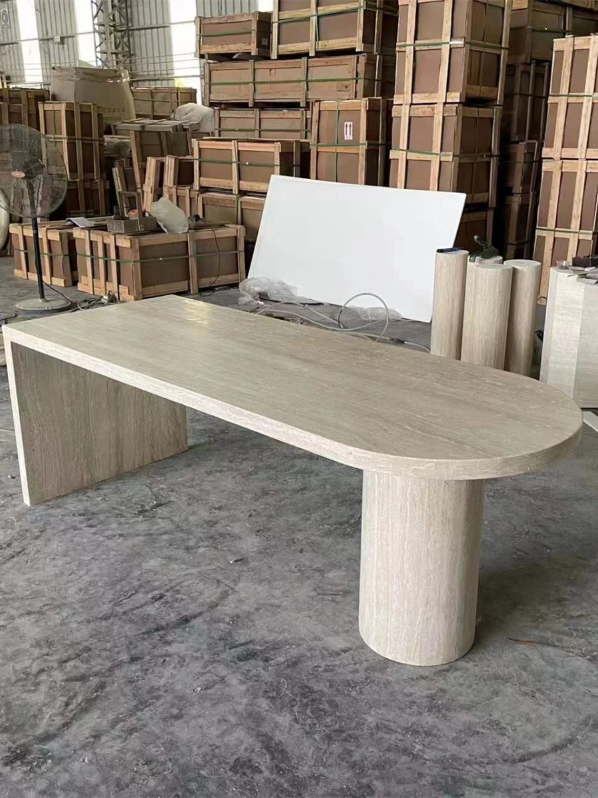 高級感溢れる欧風天然洞石ダイニングテーブル - リビングにぴったりの大理石長方形アイランドテーブルで、優雅な食事空間を演出します。