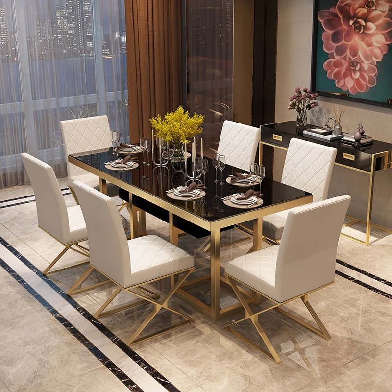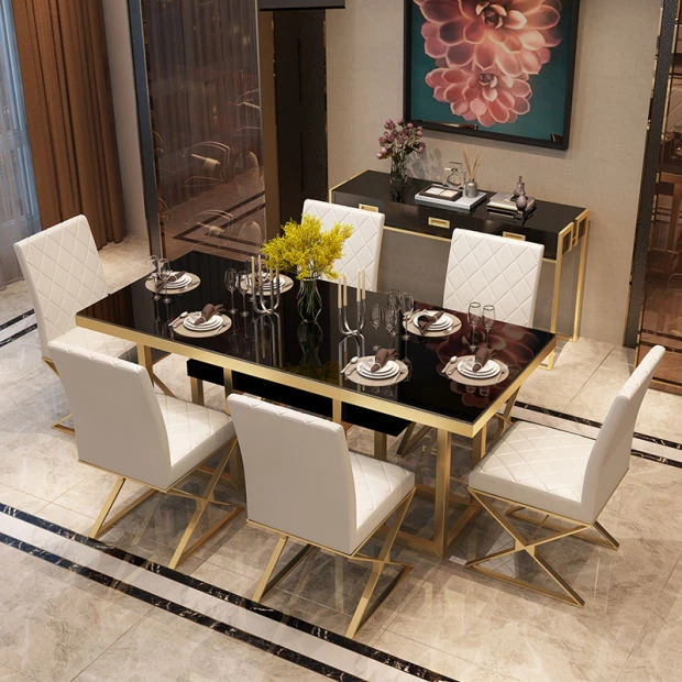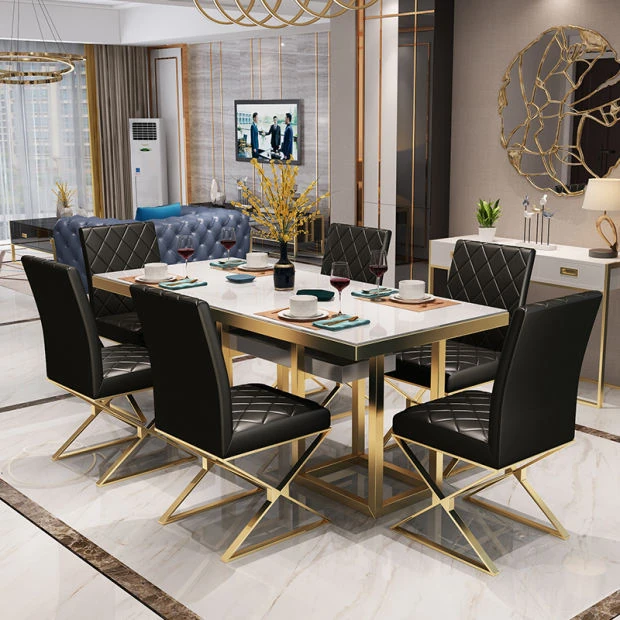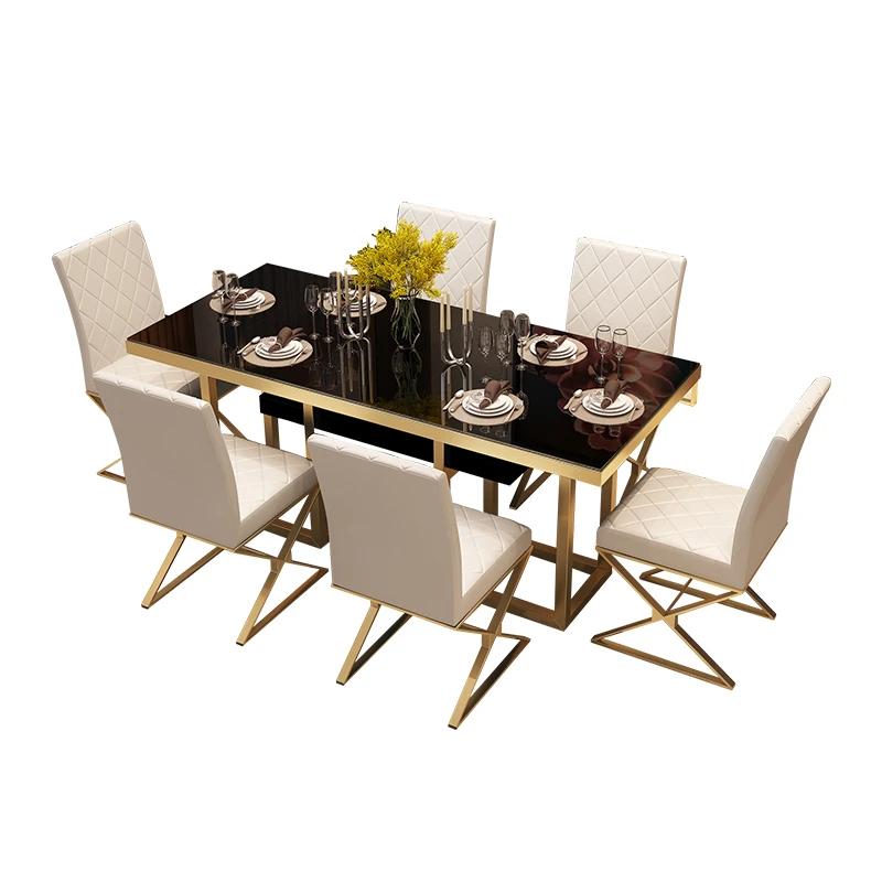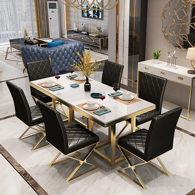 北欧スタイル大理石長方形ダイニングテーブルセット|モダンでシンプルなデザインの軽奢食卓|小さな家にもぴったりのトレンディなダイニング家具