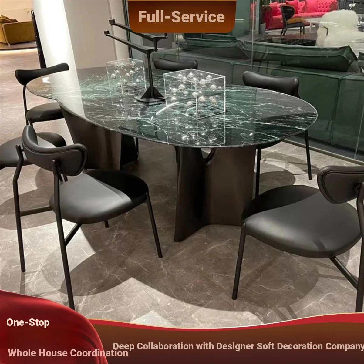 Luxury Imported Marble Dining Table and Chair Set for Villa - Modern Natural Stone Long Table for Home Use - Complete Soft Decoration Solution for Elegant Spaces