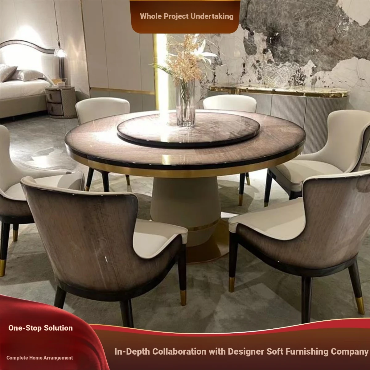 Luxury Italian-Style Marble Dining Table and Chair Set for Hotels and Villas - Elegant Round Design for Spacious Homes - High-End Quality Furniture