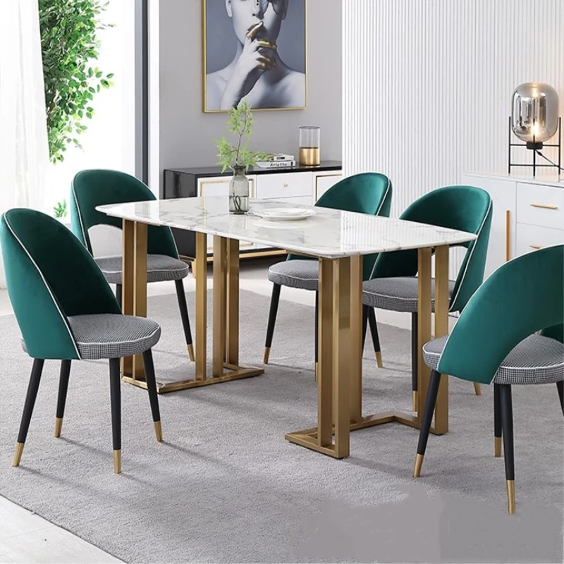 Nordic Minimalist Luxury Marble Dining Table Set for Small Spaces – Modern Rectangular Table and Chairs Combination for Home Use
