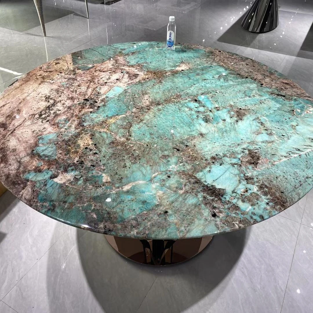 Elegant Natural Marble Dining Table with Rotating Centerpiece - Modern Simple Design for Villas and Spacious Homes - Luxurious Amazon Green Finish