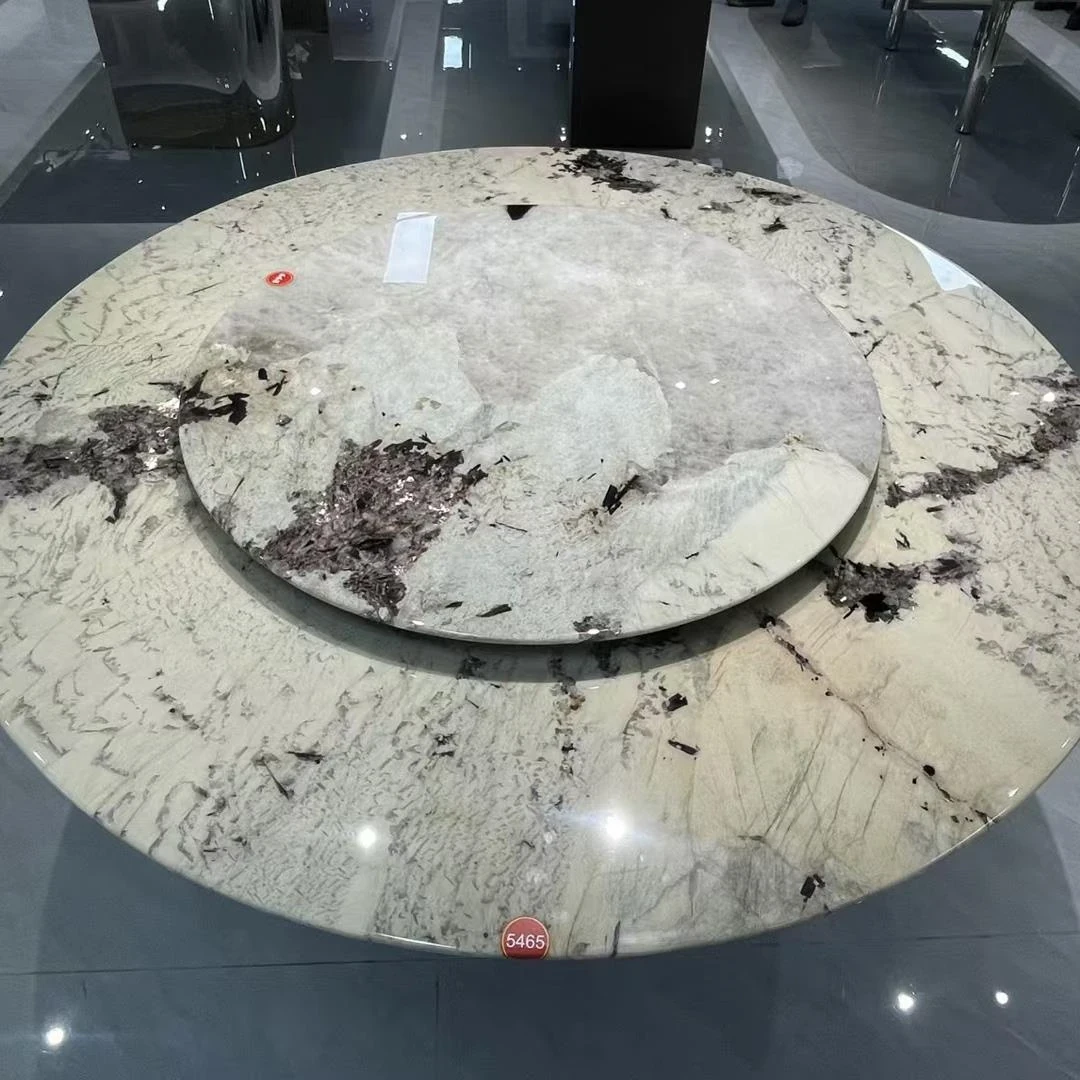 Luxury Stone Hotel Natural Marble Round Dining Table for Home – Italian Light Luxury High-End Villa Dining Table with Rotating Centerpiece for Spacious Living Spaces